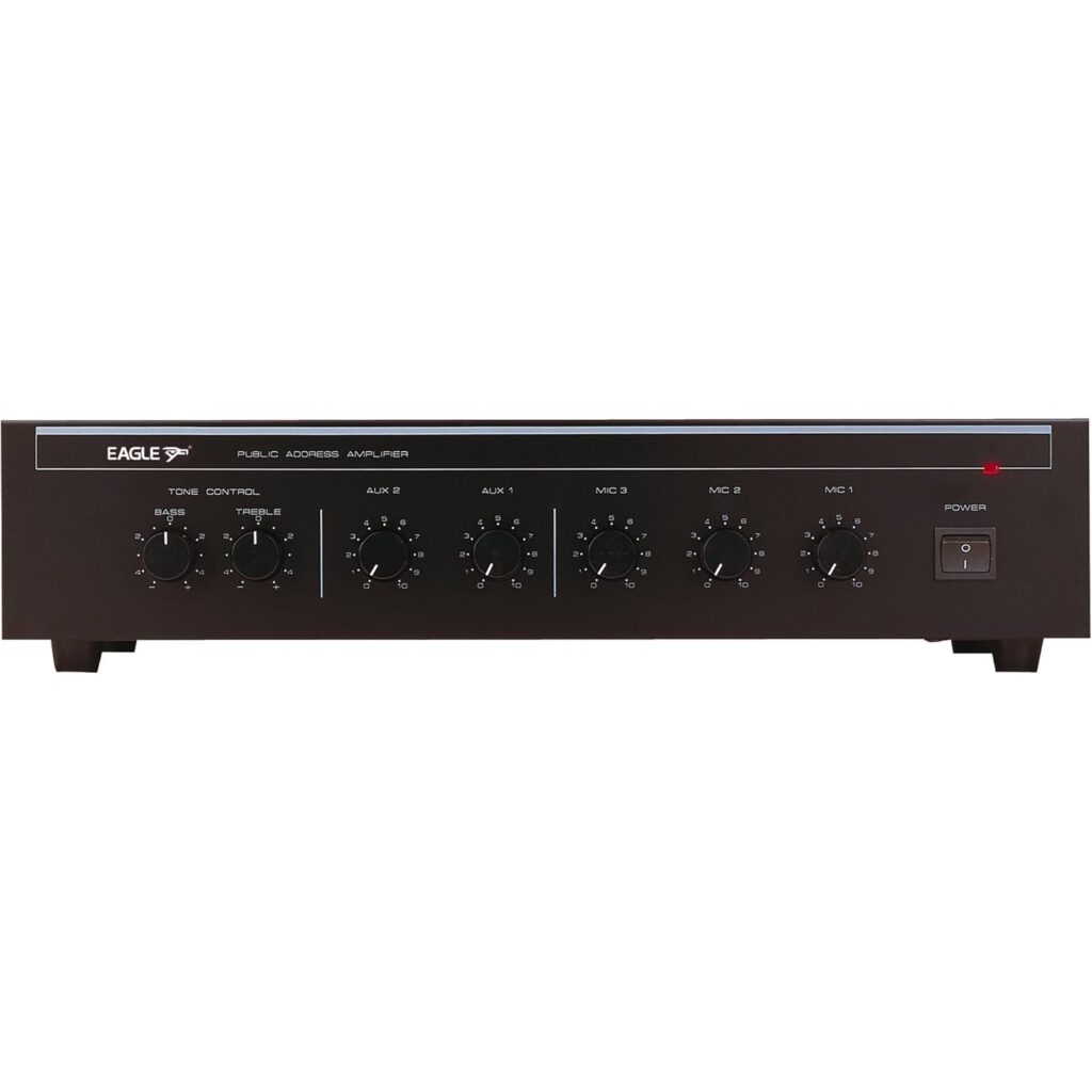 The Eagle PA4120E is a robust 120-watt RMS mixer amplifier, ideal for medium to large public address (PA) systems, events, and venues. It features five